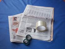 Paso 4: La tira de 10 cm la enrollamos sobre la tira de 25 cm dejando el mismo espacio inferior y superior. La fijamos con la cinta aislante.