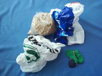 Paso 2: Corta varias tiras de plástico de las bolsas de colores. Puedes unir varias tiras.